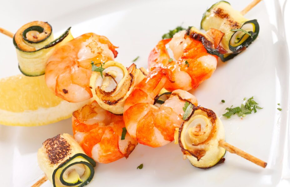 chargrilled broccoli & lemon / red tiger prawns / seabream / shellfish / squid /Portion Size